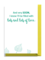 Today is all about anticipation! This beautiful pregnancy card expresses the baby’s eagerness to arrive just as much as the parents’. Gift this simple keepsake that honors the final, exciting moments for the new parents.